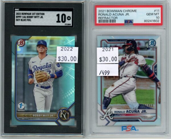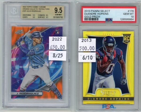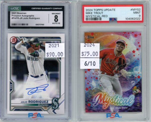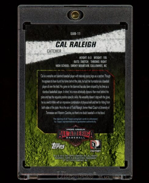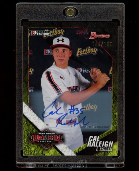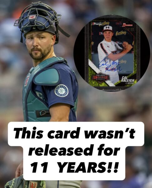 This card wasn’t released in packs for 11 years! It was signed by Cal Raleigh in 2014, but Topps didn’t release it until this year’s Bowman Chrome! What do you think about this awesome card!