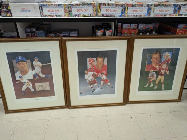 Autographed art prints! Pee Wee Reese and Gordie Howe $149.95 each. Joe Montana $199.95