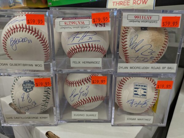 We just picked up an amazing collection of Mariners slabs, autos, and more! Come check it all out! Pricing is not available online quite yet, but we will post them soon!
