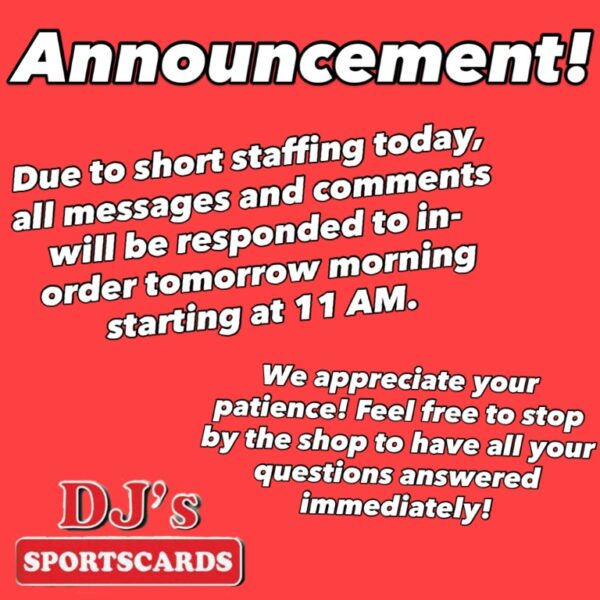We are open today from 11 AM – 7 PM! Feel free to call or stop by with any questions you have! And we will get to all your online comments and claims as soon as possible tomorrow morning! We still have two buyers at the store as well!