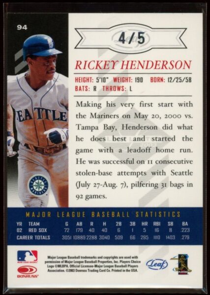 DJ’s Card of the Day! Rickey Henderson Autograph in his Mariners jersey!