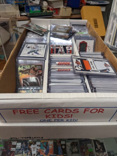 HEY KIDS! A nice DJ’s customer told me to give these cards to you. Come down to DJ’s and get a free card from this box your choice! Limit one card per day!