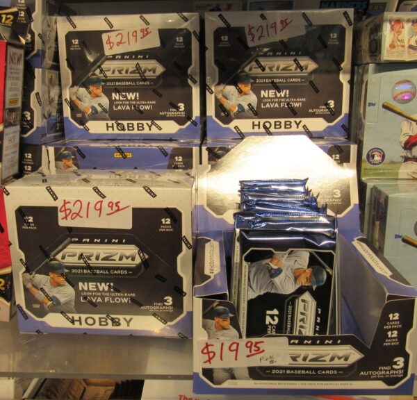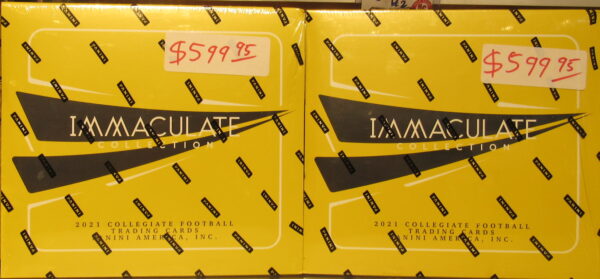 2021 Topps Chrome hobby boxes $249.95 each, jumbo $449.95 each. 2021 Panini Elements $349.95 per box. 2021 Immaculate Baseball $324.95 per box.