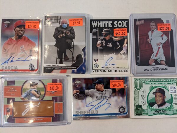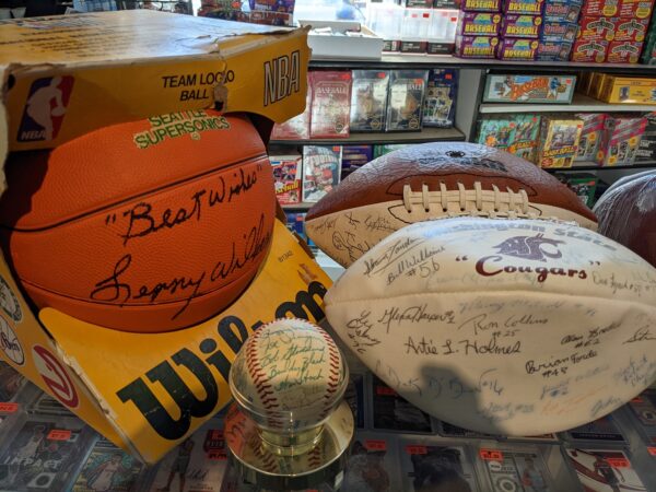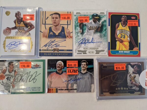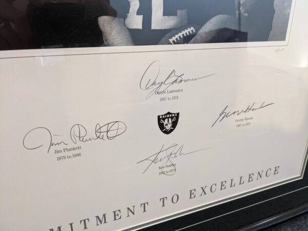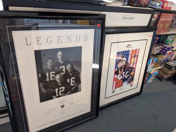 Awesome certified autographed pieces! Raiders Legends quad auto $399.95. Terrell Davis with Bugs and friends $99.95.