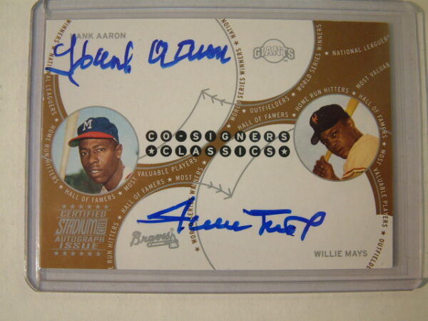 Hank Aaron/Willie Mays dual signed card $3999.95