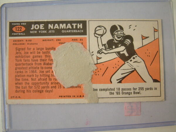 New Arrivals! Joe Namath rookie with glued back. Sold!