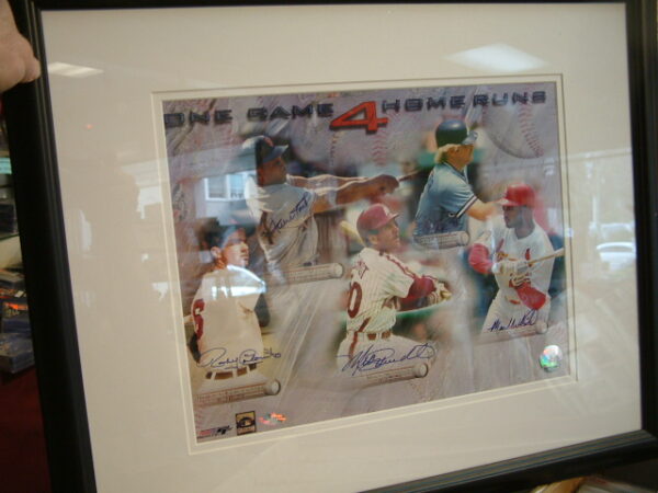 Steiner certified 4 home run game autographed picture. Picture has some wrinkling but also great autographs including Willie Mays, Mike Schmidt, and Rocky Colavito. $199.95.