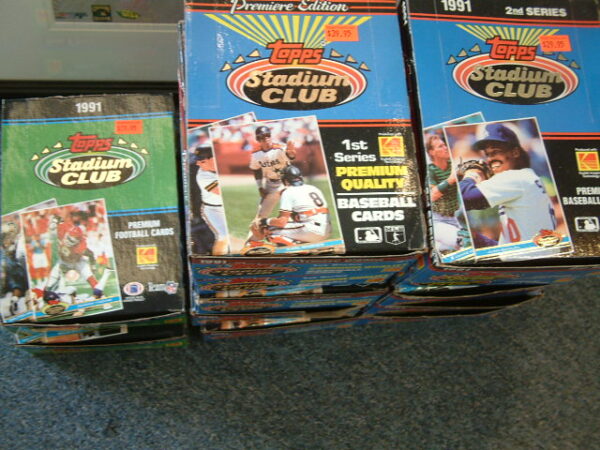 1991 Stadium Club Baseball boxes series 1 $39.95 each, series 2 $29.95 each. 1991 Football $99.95 each possible Brett Favre rookies!