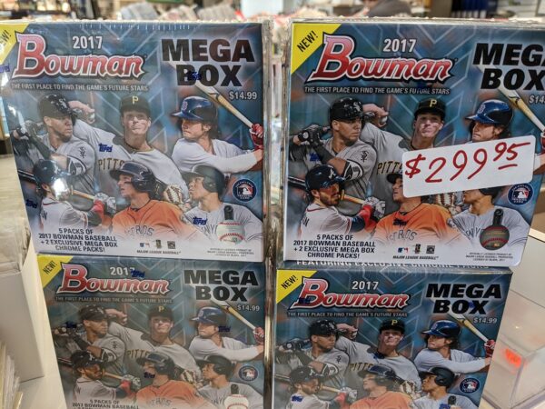 Chronicles Football $499.95 per box. Topps Pristine Baseball $369.95. Topps Archives Signature $79.95.