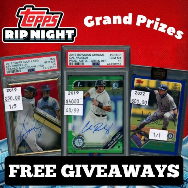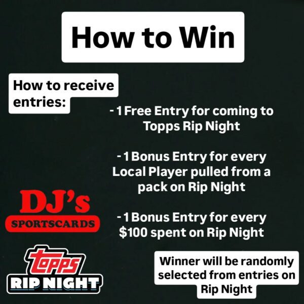 We will be giving these away to celebrate Topps Rip Night on Saturday, February 21st! Every one who stops by the shop that day will get a FREE ENTRY to win one of over 150 PRIZES including these grand prizes! Check out the other ways to receive bonus entries as well! We will post the rest of the prizes soon!