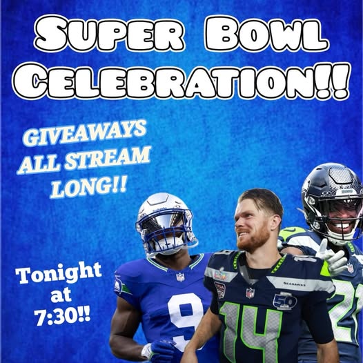 Join us tonight at 7:30 PM PST for a Surprise Seahawks Super Bowl Victory Whatnot! Message us if you’re new to Whatnot for some more information!