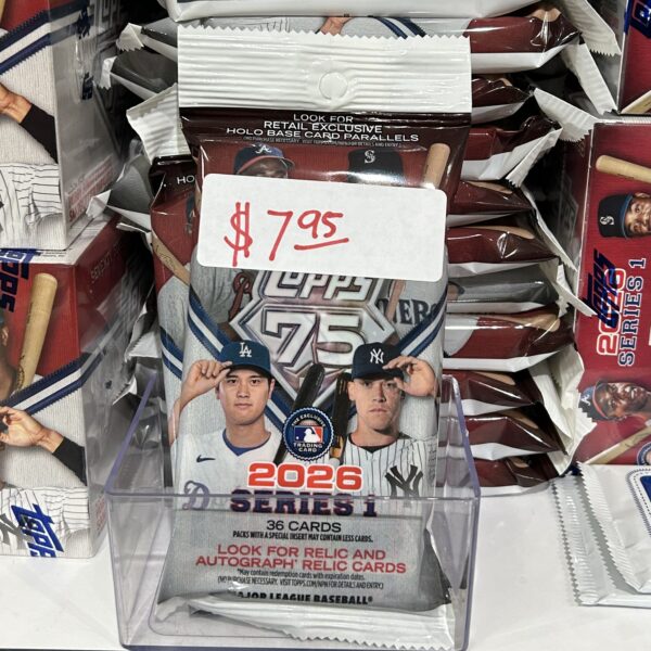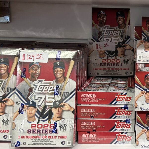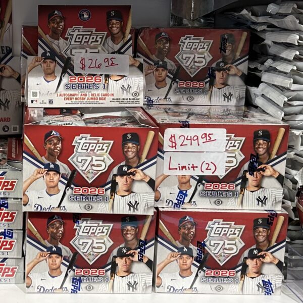 2026 Topps Series 1 is live! Come join the 75 Year Anniversary of Topps with this awesome release! All packs and boxes are in-store pickup only.