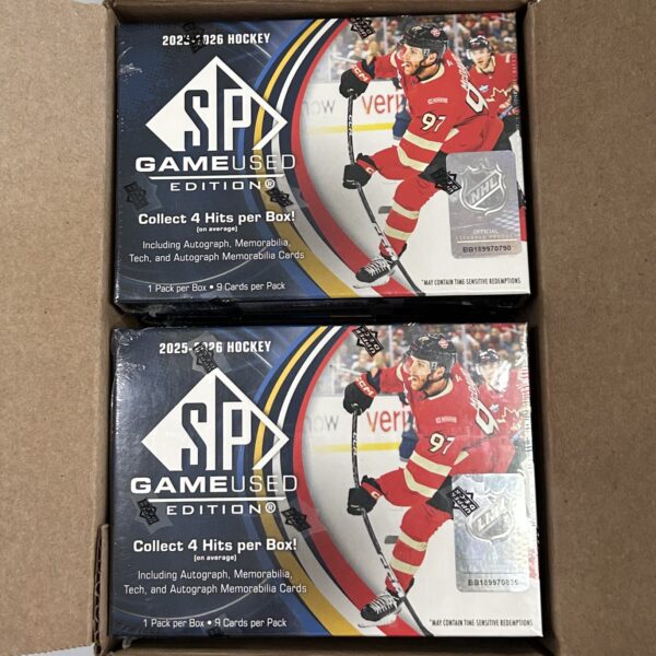 New 25-26 Upper Deck SP Game Used Hockey Hobby Boxes now Available! Call us at 425-235-4357 for prices!