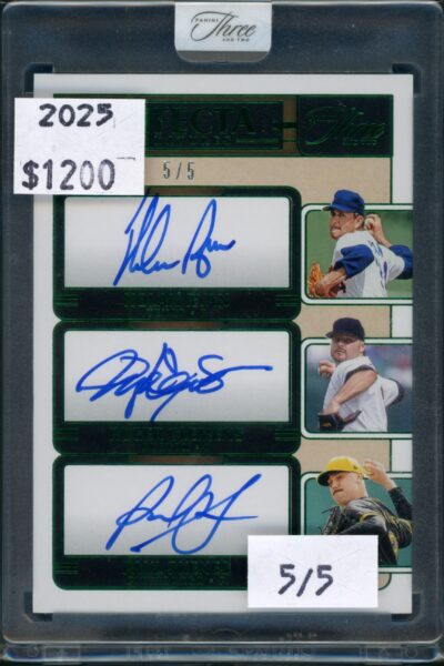 DJ’s Card of the Day! Check out this Sweet 2025 Triple On-Card Auto /5 featuring Nolan Ryan, Roger Clemens, and Paul Skenes! Three of the Best Arms Ever to Take the Mound! Now Available for $1,200!
