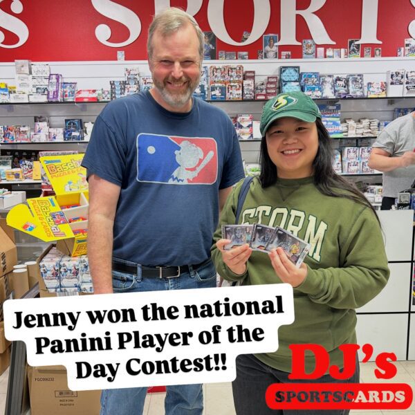 Jenny was selected the Grand Prize Winner of the National WNBA Player of the Day Contest! She was selected from over 100,000 entries across 500 hobby shops! We were super excited to present her with these awesome prizes from Panini! Congrats again Jenny!